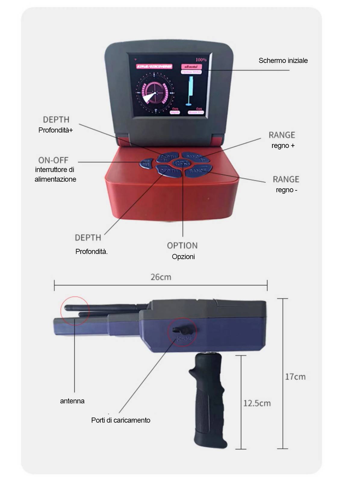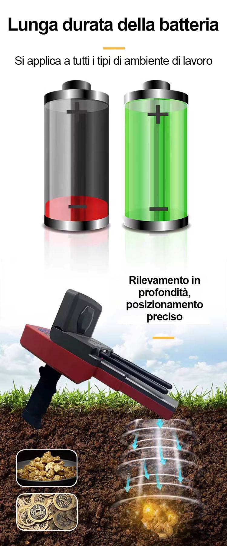 Il metal detector può essere smontato e rimontato facilmente per un utilizzo all'aperto.