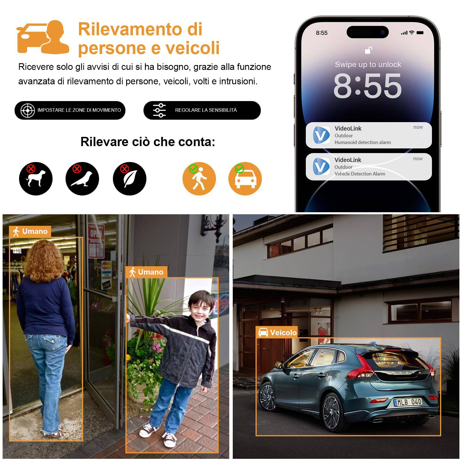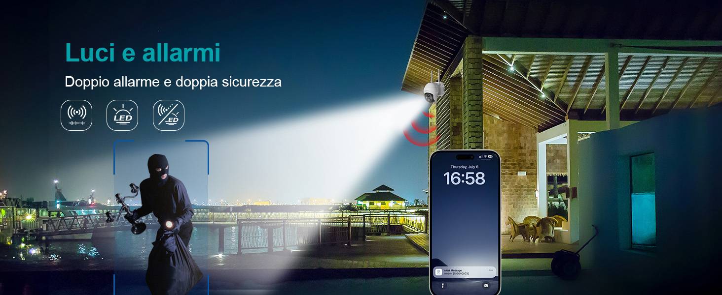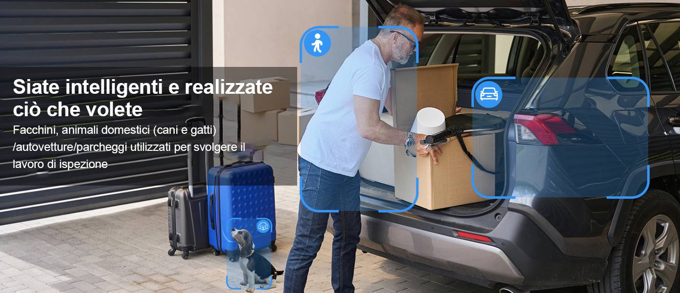 Tecnologia di rilevamento intelligente: questa telecamera di sicurezza non solo rileva il movimento di persone e veicoli, ma ha anche una funzione di tracciamento automatico PTZ per monitorare i bersagli in qualsiasi momento