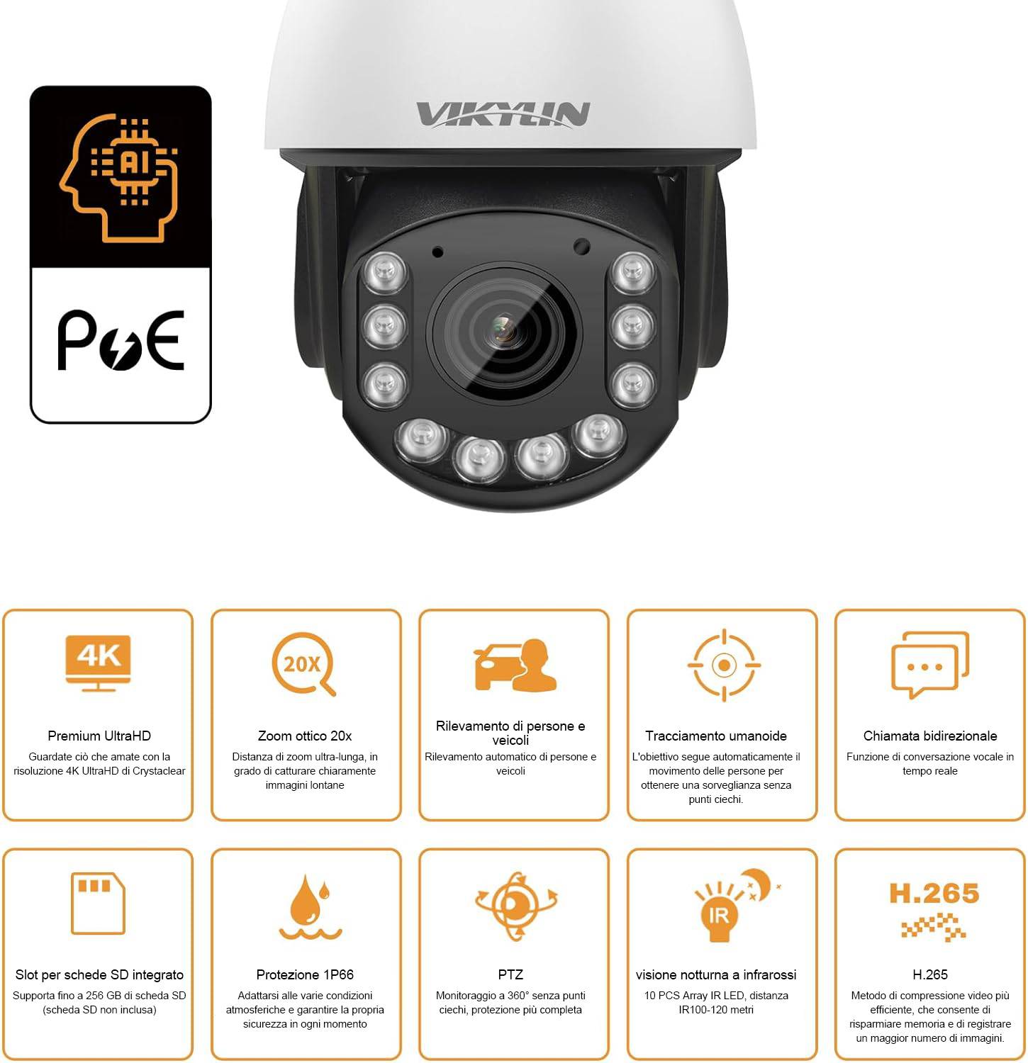 Telecamera IP VIKYLIN PTZ 4K 8MP per esterni