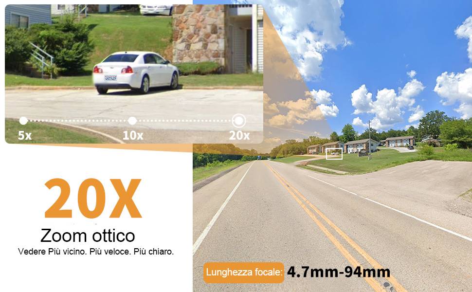 Zoom ottico 20x e rilevamento di persone/veicoli
